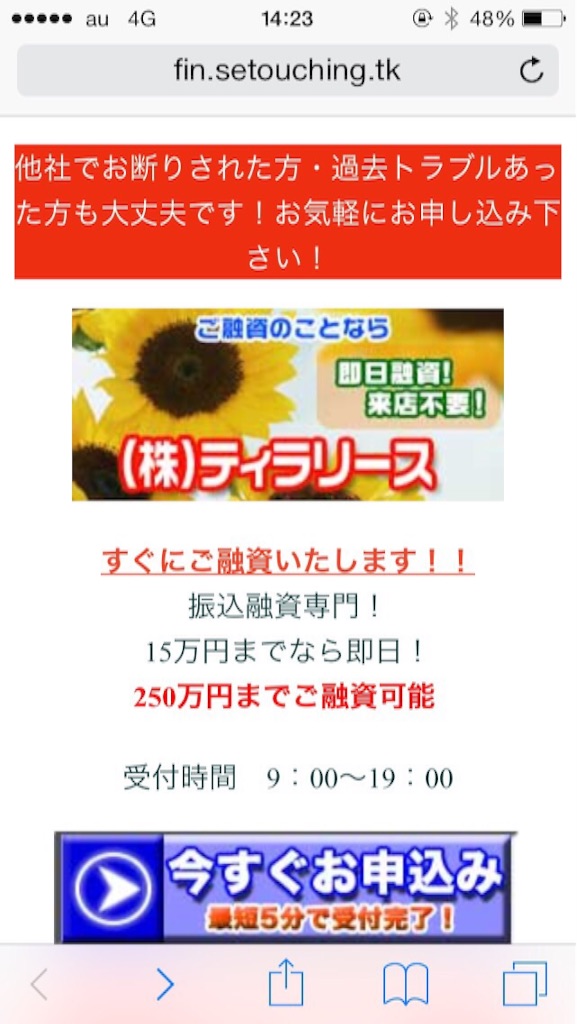 奇麗なスマホサイトが用意されていますが、完全にヤミ金です。