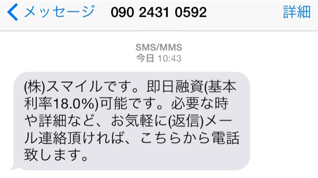 先ほど「090-2431-0592」の電話番号からSMSメールが届きました。