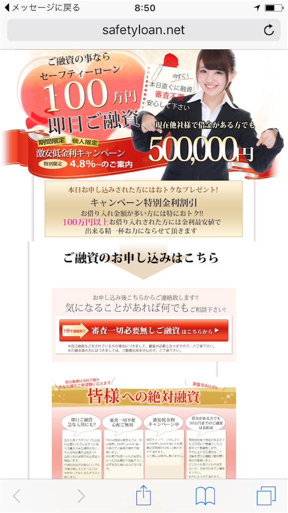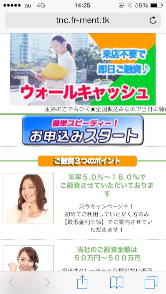 年率5.2%〜18.0%、融資金額10〜500万円など、それらしい事が書かれていますが、完全な闇金なので、関わりを持たないようにしましょう。