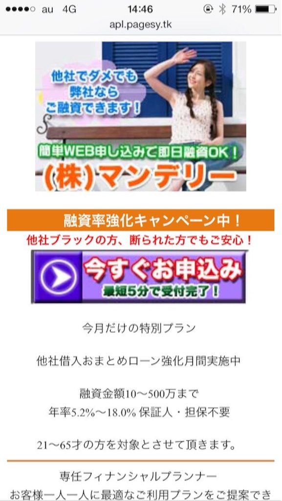 他社借入おまとめローン強化中と書いてありますが、こんなのは全てデタラメです騙されないように注意して下さい。