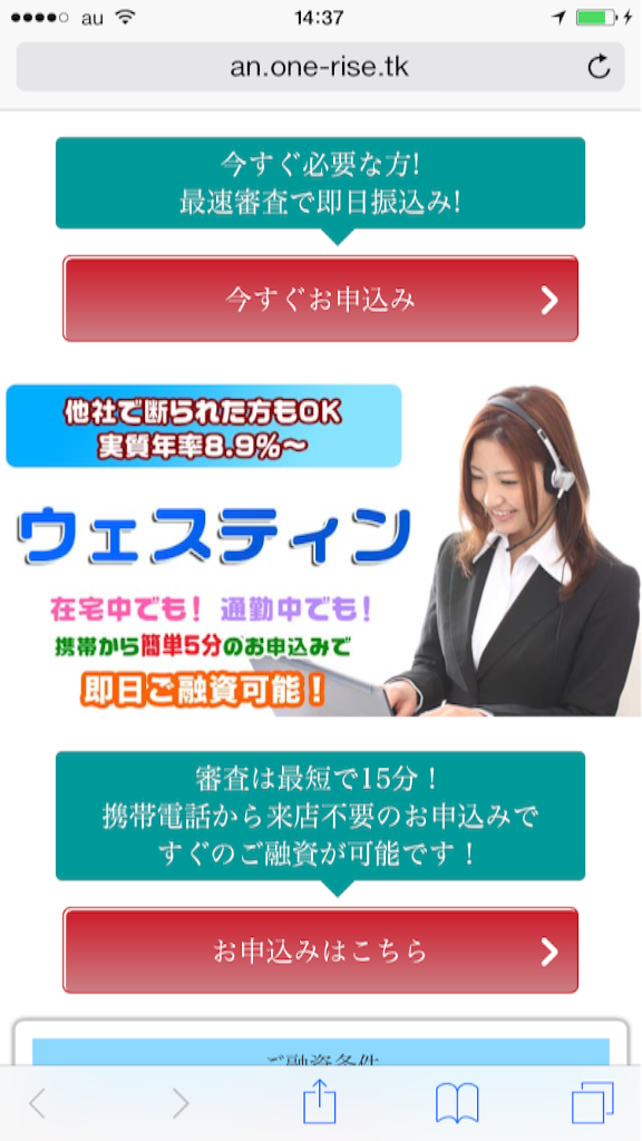 この時点で闇金確定です、奇麗なスマホサイトが用意されていますが、ここに書いてある情報は全てウソだと思って下さい。