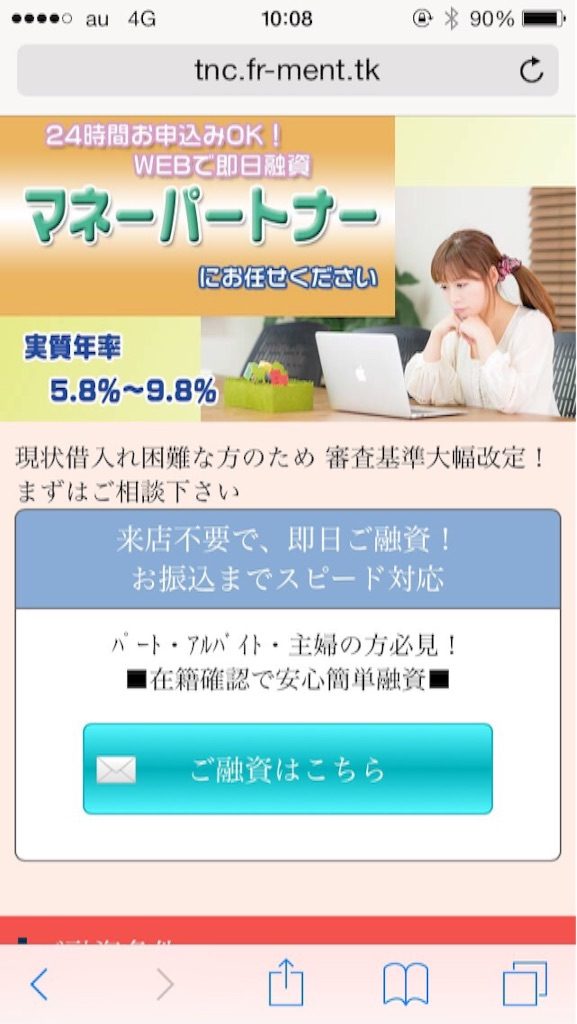 奇麗なスマホサイトが用意されていますが、確実に闇金なので騙されないように注意して下さい。