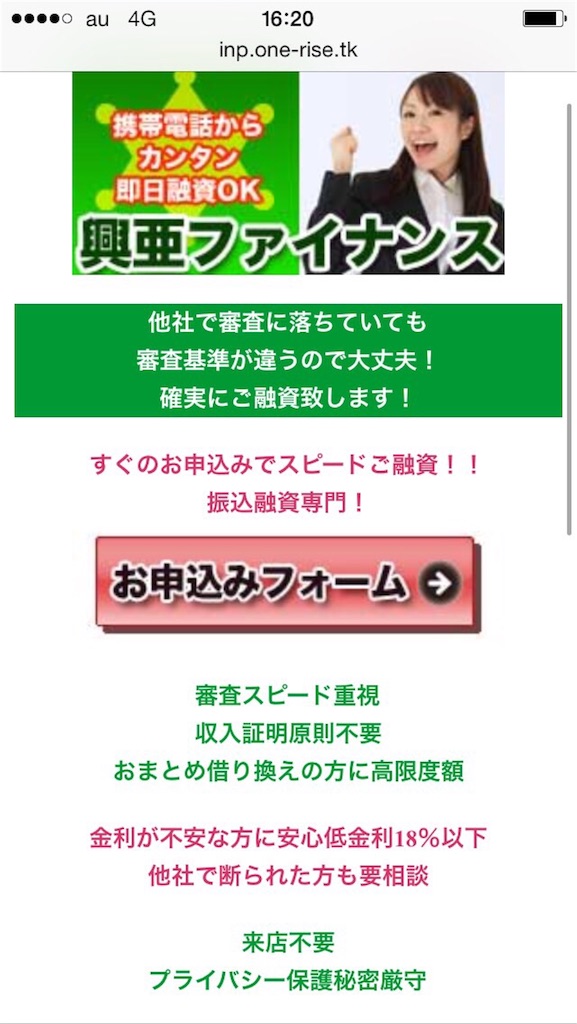 初回1〜20万円まで融資可能と書いてありますが、最近の闇金の相場は2週間で3割の金利が多いと言われています。