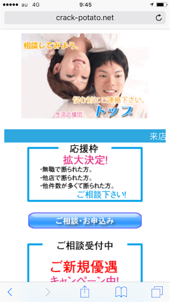 いかにも正規の金融業者を装っているような、綺麗なスマホサイトが用意されていますが完全に闇金なので騙されないようにしてください。