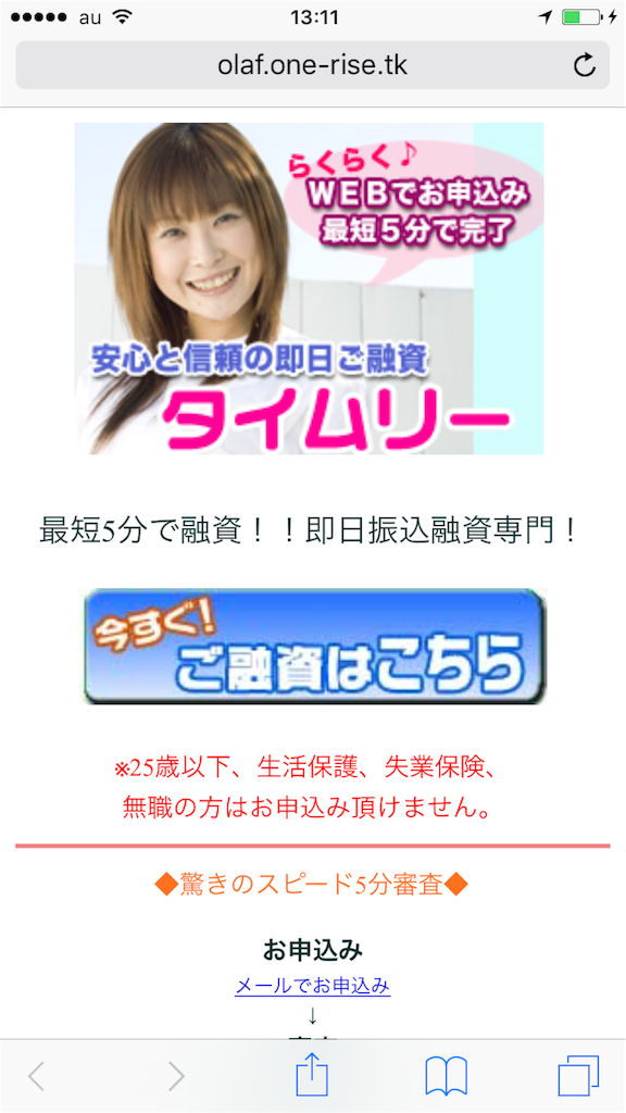 最短5分で即日融資「タイムリー」は闇金です!