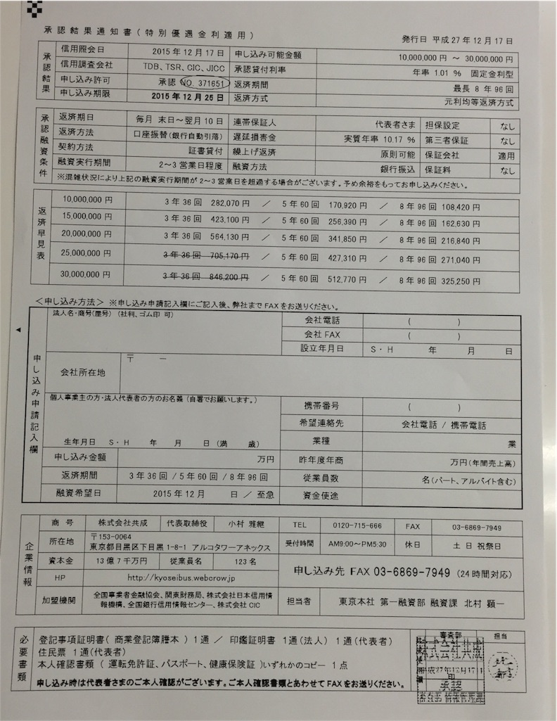 3000万円を年率1.01%で融資可能と書いてありますが、よく考えてみてくださいFAX1枚で3000万円もの大金を貸してくれる金融業者が世の中に存在するはずがありません。