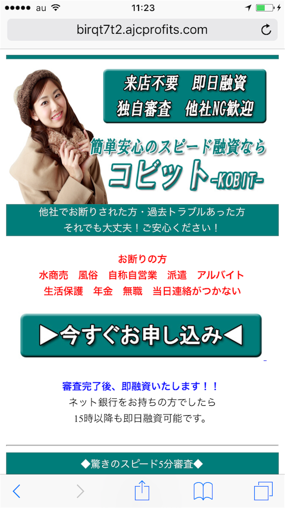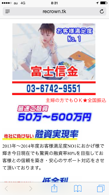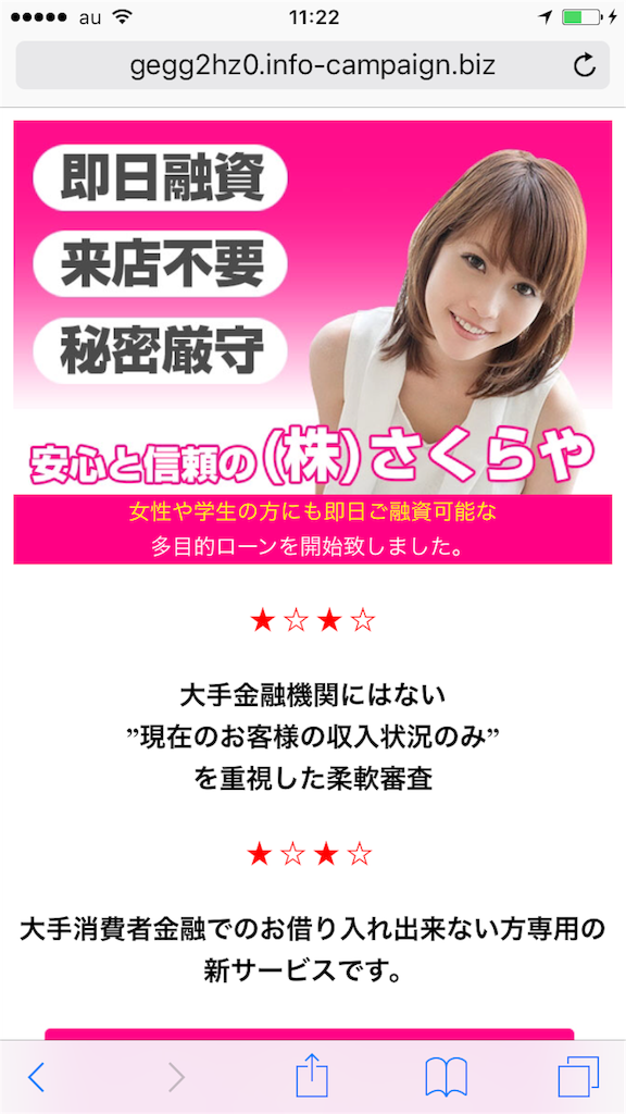 きれいなスマホサイトを用意して、いかにも正規の金融業者のように装っていますが、完全に闇金なので騙されないようにしてください。