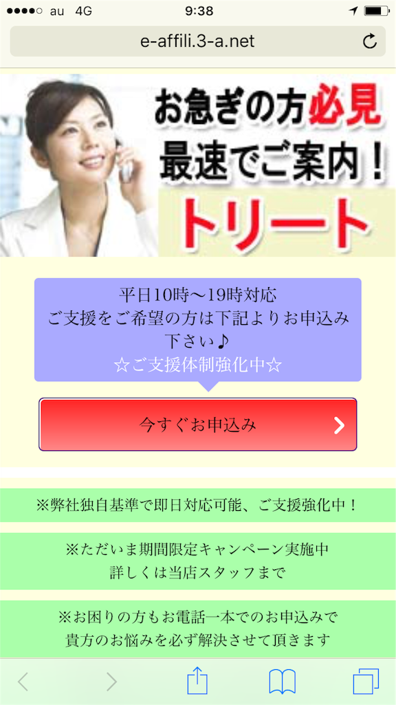 きれいなスマホサイトを用意していかにも正規の金融業者のように装っていますが、完全に闇金なので騙されないようにしてください。