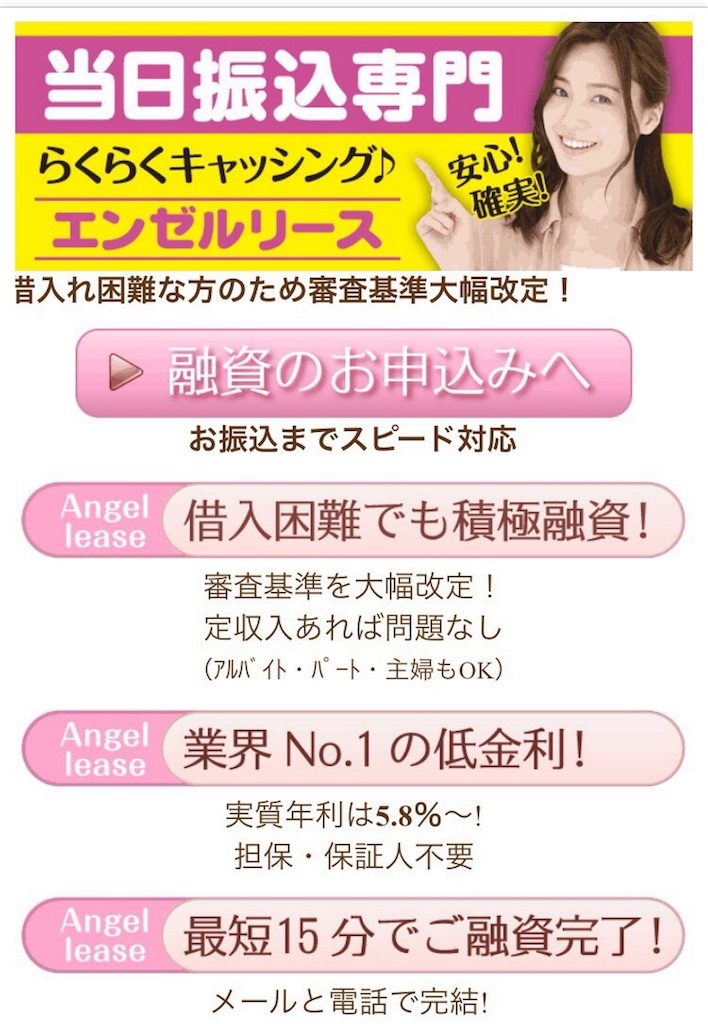 エンゼルリースが利用しているスマホホサイトのデザインは、他の闇金もたくさん使っている闇金専用のスマホデザインです。