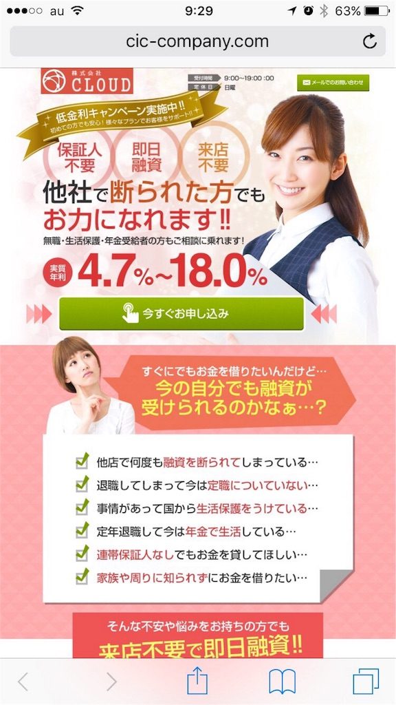 保証人不要、即日融資、来店不要、実質金利4.7%〜18.0%などいい事ばかり書いていますが、ここに書いてあることは全てウソです。
