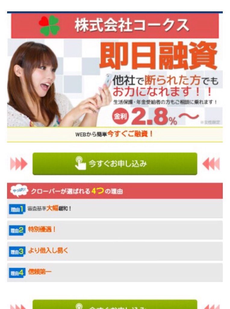 金利2.8%〜、他社で断られた方でもお力になれます、審査基準大幅緩和などいい事ばかり書いていますが、ここに書いてある事は全てデタラメです。