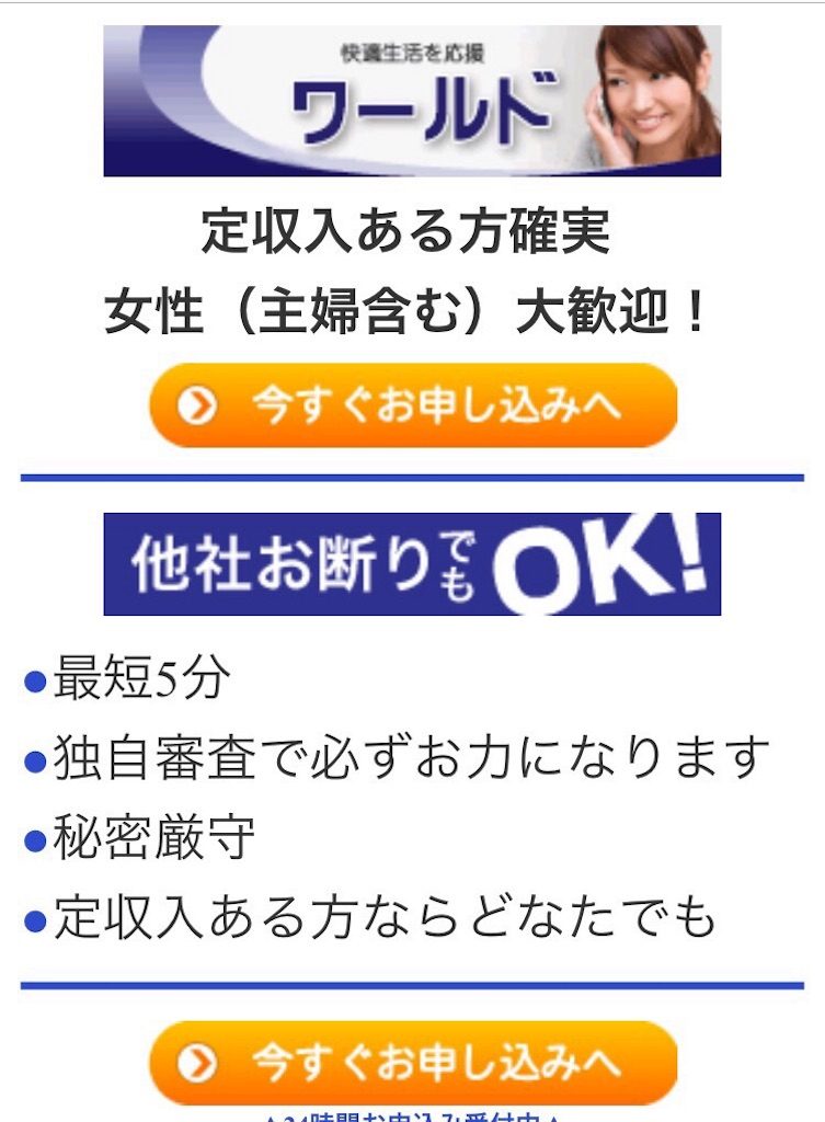定収入ある方確実の「ワールド」は闇金です。