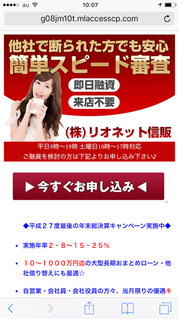 奇麗なスマホサイトを用意して、いかにも正規の金融業者のように見せかけていますが、完全に闇金なので騙されないようにして下さい。