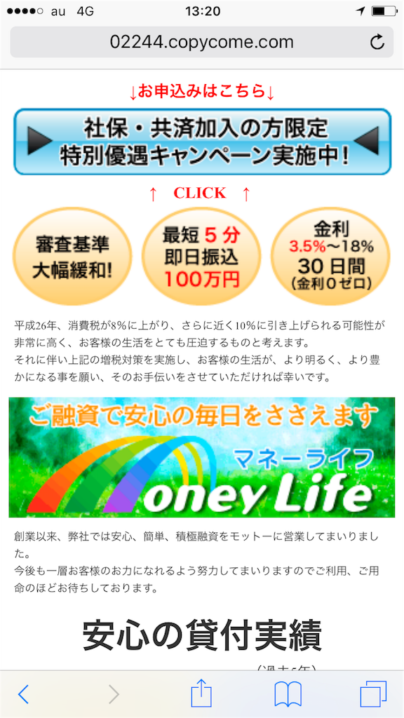 きれいなスマホサイトになっていますが、完全に闇金なので騙されないように注意してください。