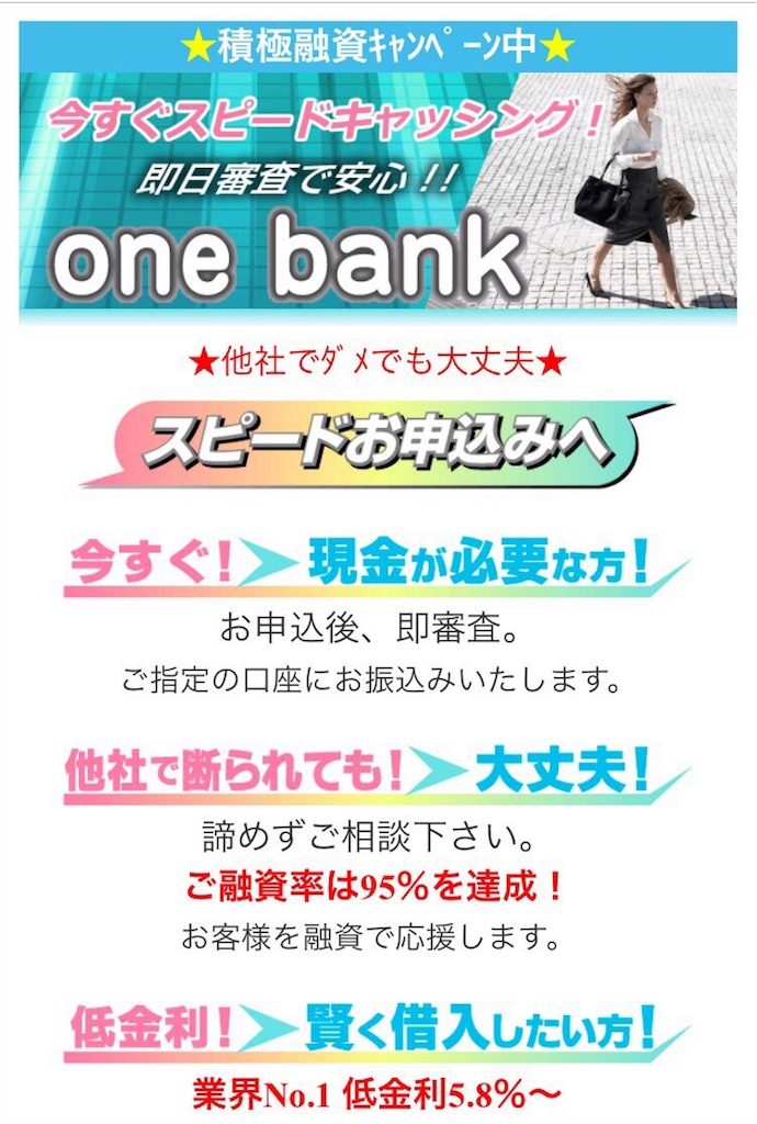 今すぐスピードキャッシングの「oneバンク(one bank)」は闇金です。