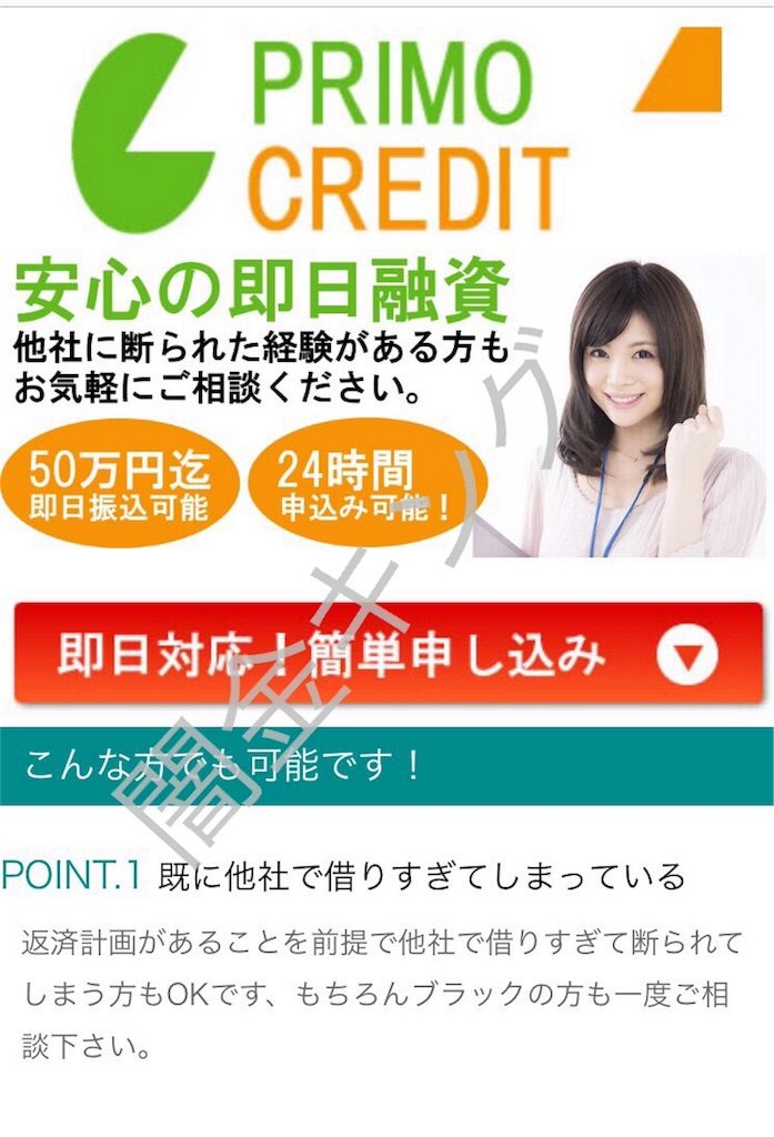即日対応!簡単申し込みの「PRIMO CREDIT(プリモクレジット)」は闇金です。