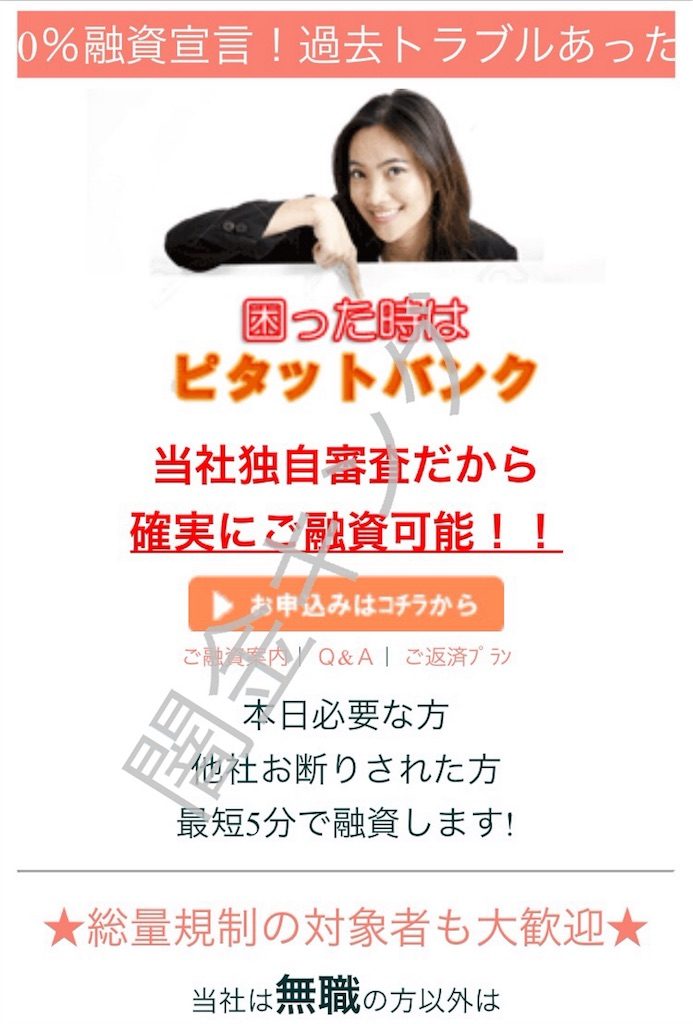 120%融資宣言「ピタットバンク」は闇金です!