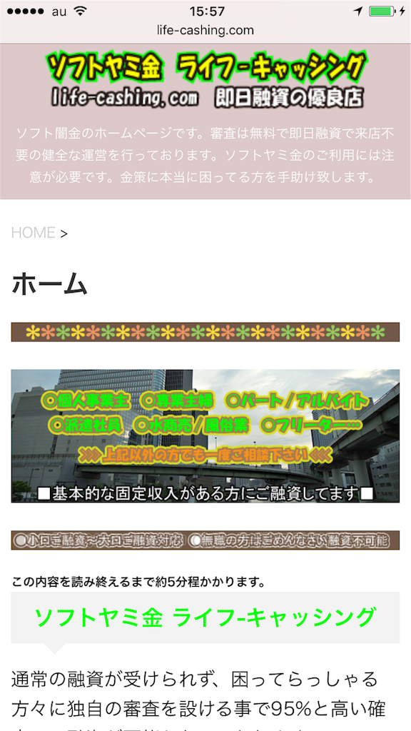 ライフキャッシングは、違法金利にも関わらず堂々とホームページで営業を行っている闇金です。