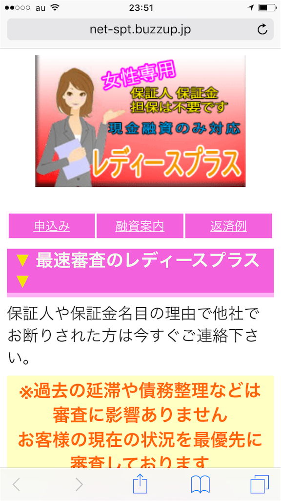即日スピード融資、秘密厳守、ブラックOK、初回大口融資可などいい事ばかり書いていますが、全てウソです。