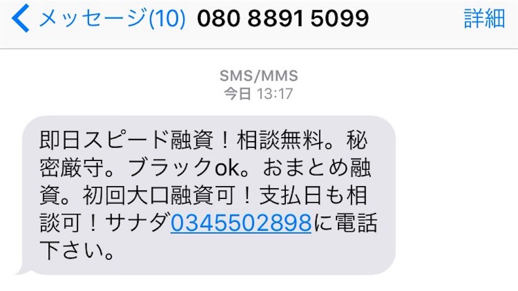 闇金「080-8891-5099」の電話番号からSMSメールが届きました。