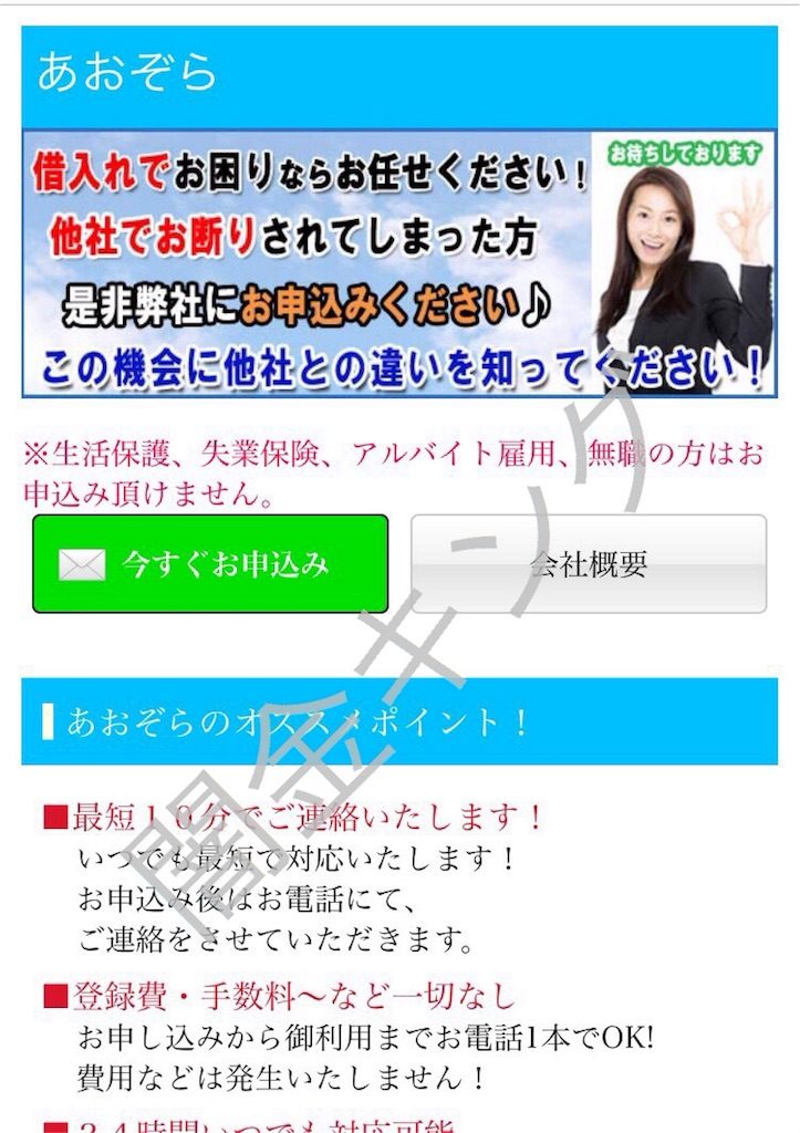 借入でお困りならお任せくださいの「あおぞら」は闇金です。