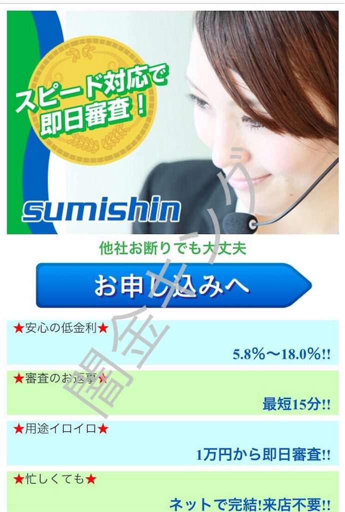 スピード対応で即日審査の「sumishin(スミシン)」は闇金です。