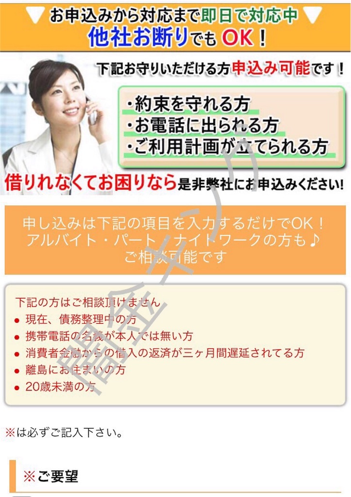全国即振込、他社で審査に落ちた方も必見です。ブラック主婦破産してても大丈夫!!メールで仮審査出来ますと書いていますが、こんなのは全てウソですよ。
