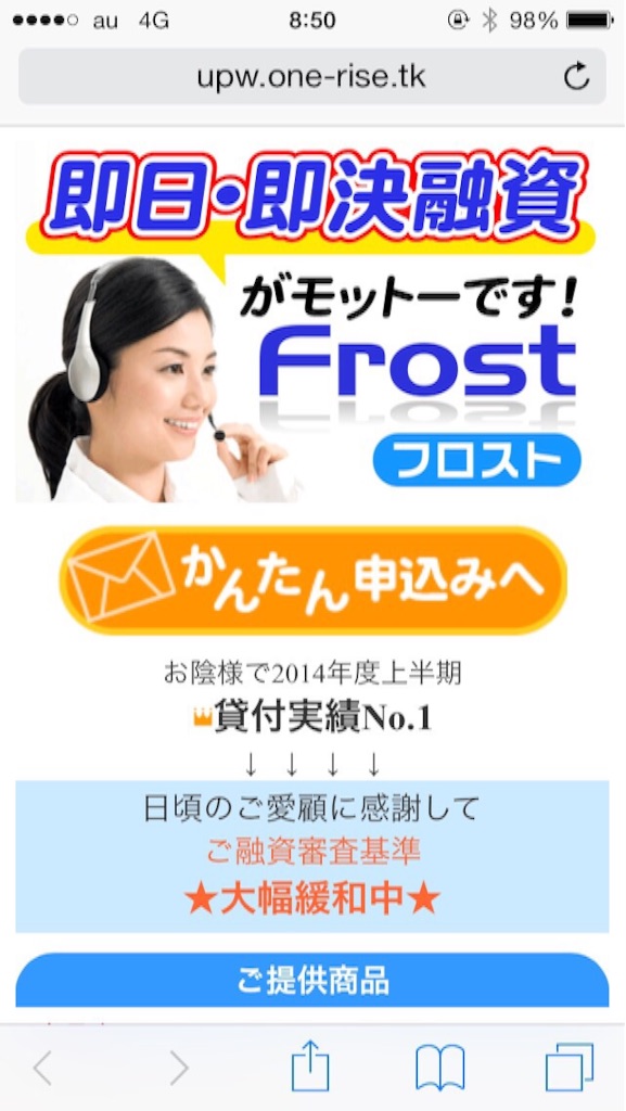 他社でお断りされた方でもOK!、柔軟対応実施中、最短10分で対応します、など書かれていますが、全て嘘なので騙されないように注意してください。