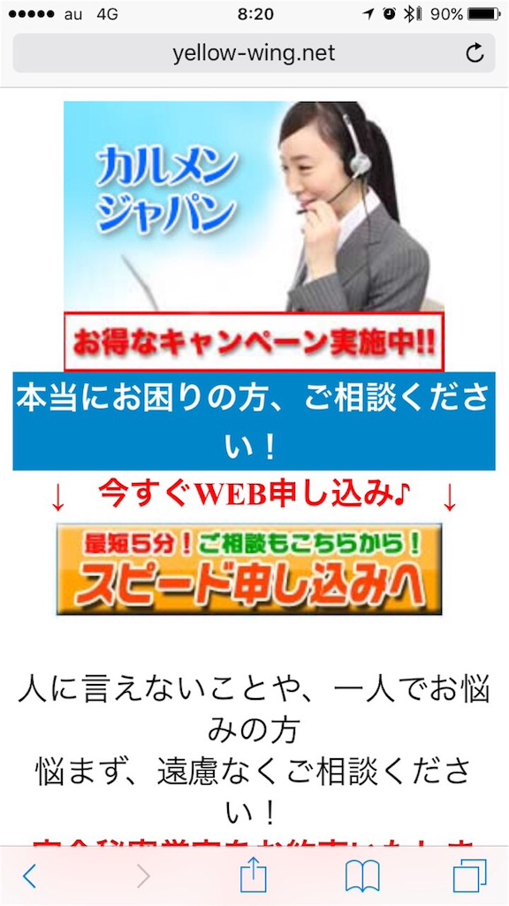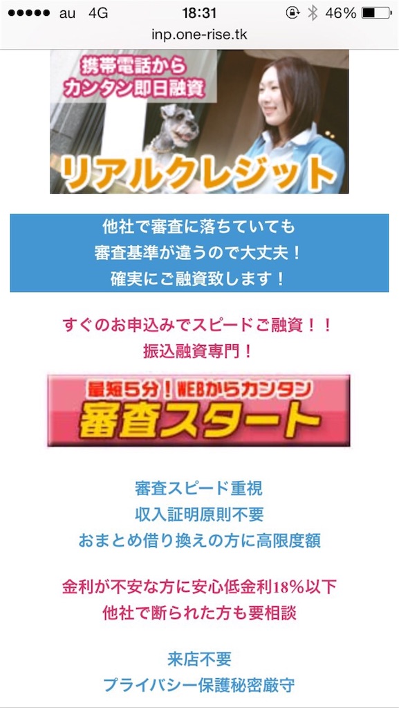 当社独自審査だから確実にご融資可能、ご融資金額1〜300万円、担保・保証人不要など、甘い言葉がたくさん書いていますがここに書いてあることが全てデタラメです。