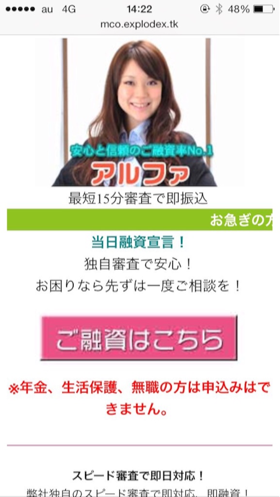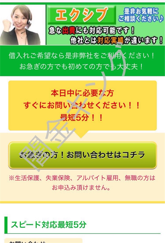 奇麗なスマホサイトを用意して、いかにも正規の金融業者のように見せかけていますが、完全に闇金なので騙されないようにして下さい。