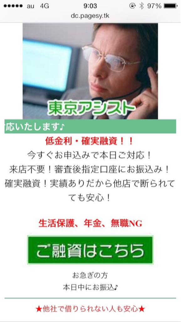 来店不要、即日融資、担保不要、実質年率4.9%〜18.0%、最短5分のスピード融資など、いい事ばかり書いていますが、ここに書いてある事は全てデタラメです。