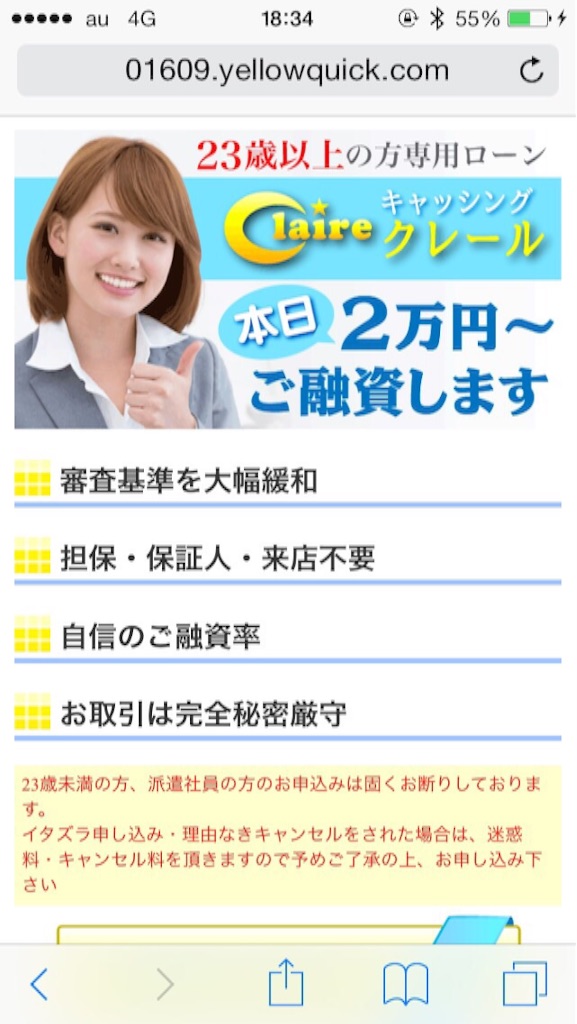 きれいなスマホサイトを用意していかにも正規の金融業者のように装っていますが、実際に申し込みをしてもお金を貸してくれる事はありません。