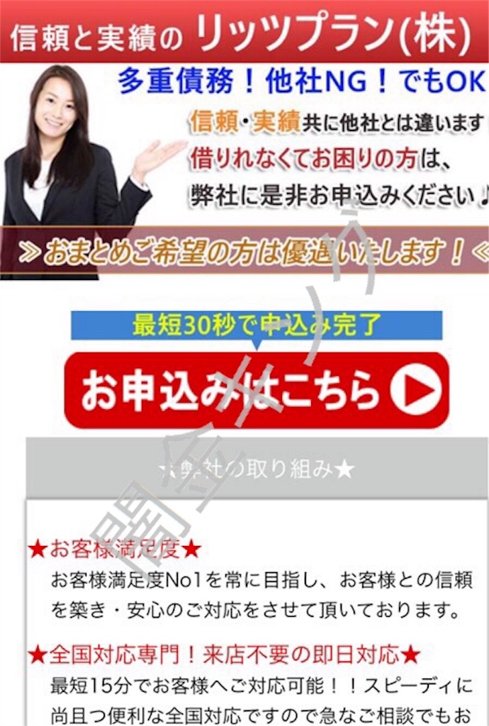 即日融資、来店不要、秘密厳守、実質年率2.8%〜15.25%など、いい事ばかり書いていますが、ここに書いてあることが全てデタラメです。