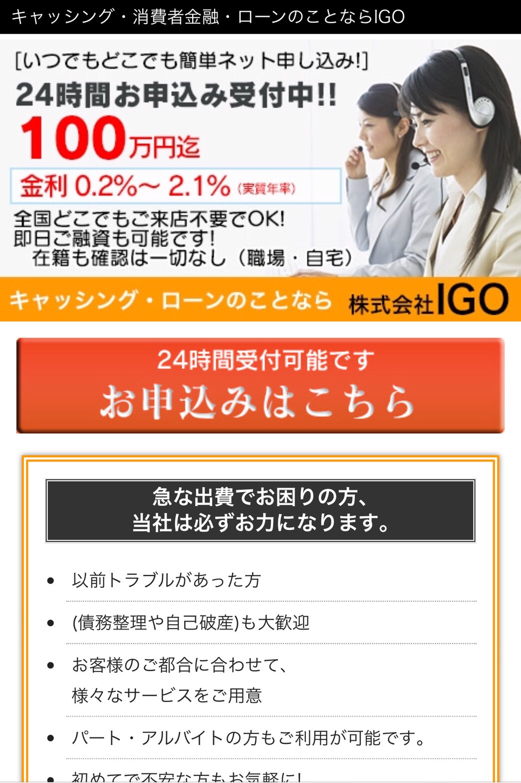 来店不要、即日融資、担保不要、実質年率4.9%〜18.0%、最短5分のスピード融資など、いい事ばかり書いていますが、ここに書いてある事は全てデタラメです。