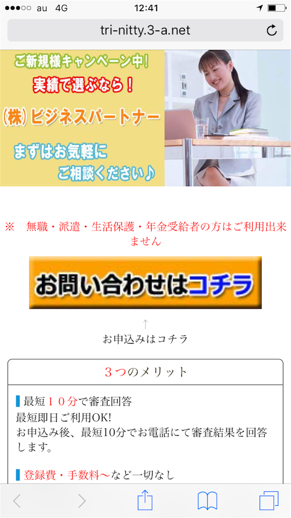 きれいなスマホサイトを用意していかにも正規の金融業者のように装っていますが、実際に申し込みをしてもお金を貸してくれる事はありません。