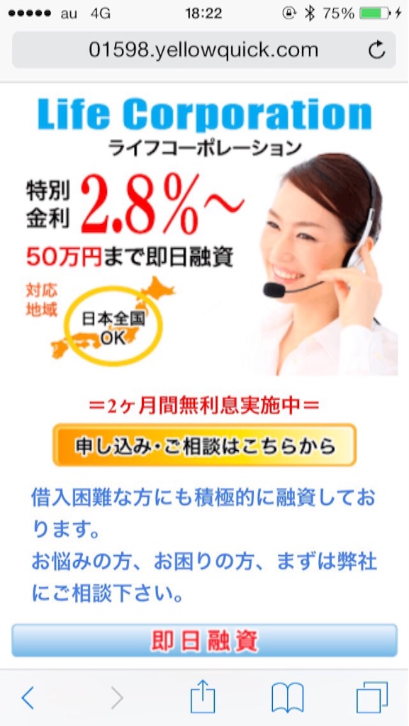 1週間無利息、本日中に振込OK、秘密厳守で幅広く対応など、いい事ばかり書いていますが、ここに書いてある事は全てデタラメです。
