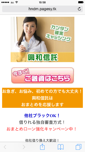 【秋の融資案内】50万円即日融資OK!利息月1割!簡単審査最短30分で振込OK!お気軽にご連絡下さい!と書いていますが、全てデタラメです。