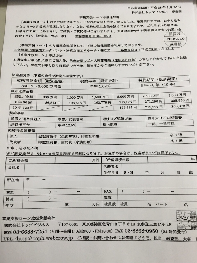 担当は山本と言う人物のようですが、長崎と言う人物もいるようです、完全に闇金なので関わらないように注意して下さい。