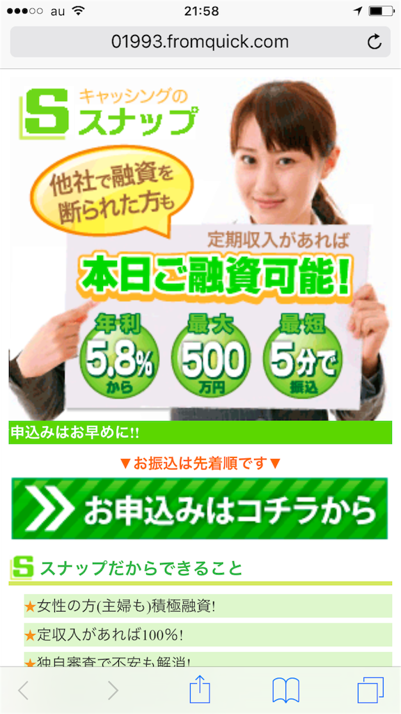 今現時点でスマホやタブレットから申し込んだだけでまだ何もやりとりしていないし、連絡も無いから大丈夫!と思われるかもしれませんが、このソフトヤミ金業者は「お金に困っていてどこにも借りることのできないブラック属性の個人情報を集めて、情報転売や騙したり脅したりする」ということを目的にしているのです。