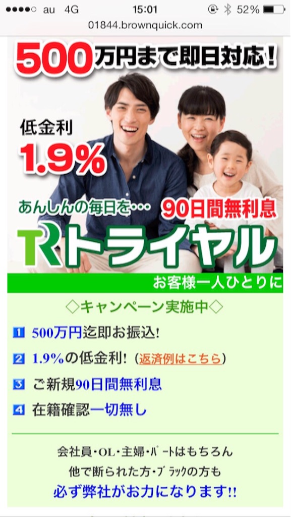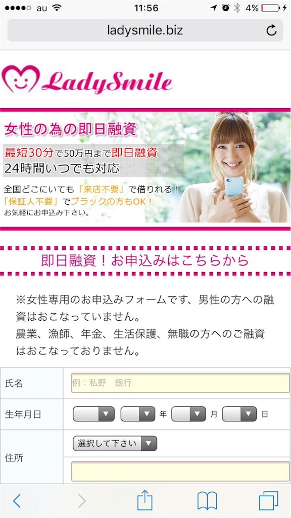 保証人不要、即日融資、来店不要、実質年率4.7%〜18.0%など良いことばかり書いていますがここに書いてあることが全て嘘です。