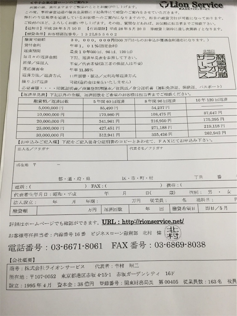 来店不要、即日融資、低金利融資、ただ今融資強化キャンペーン中、など甘い事ばかり書いていますが、ここに書いてある事は全てデタラメです。