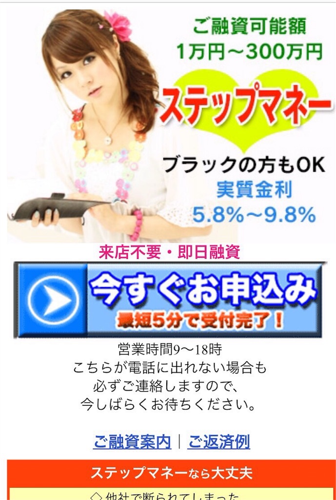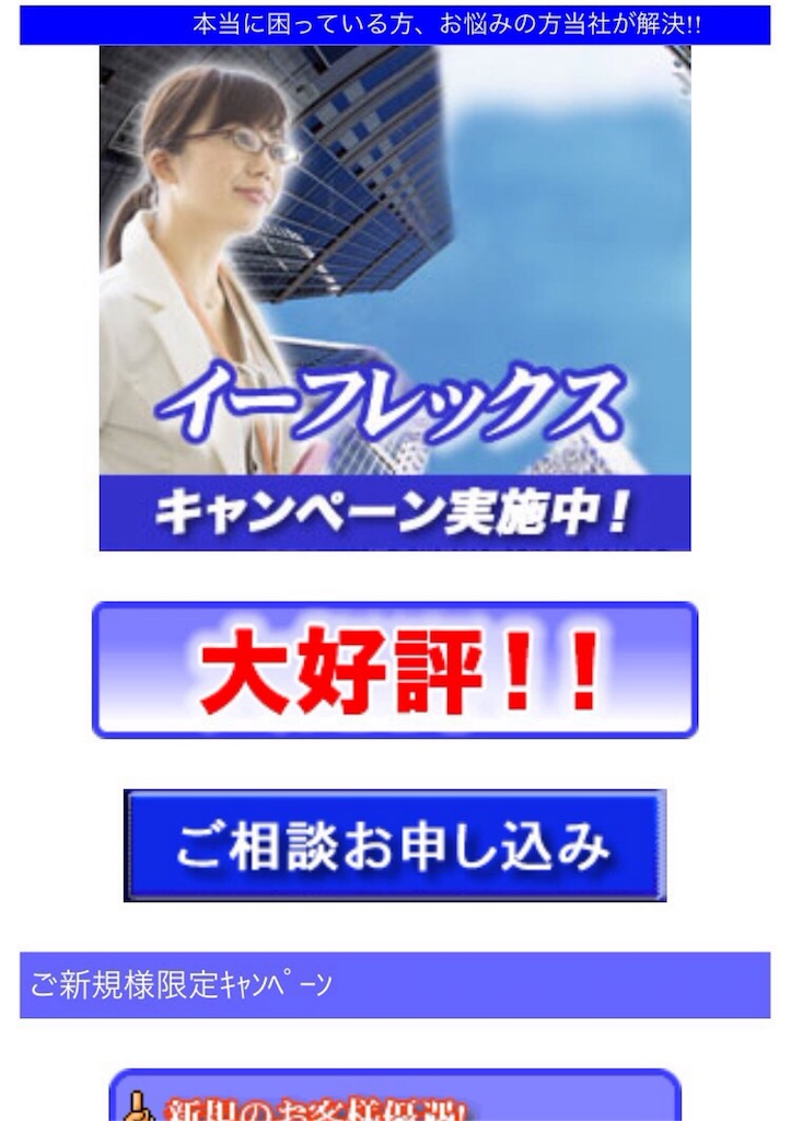 奇麗なスマホサイトを用意していかにも正規の金融業者のように装っていますが、完全に闇金なので騙されないようにして下さい。