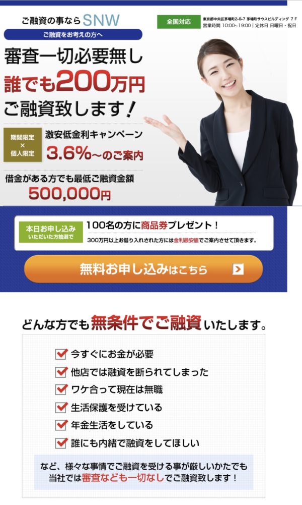 奇麗なスマホサイトを用意していますが、完全な闇金なので騙されないように注意してください。