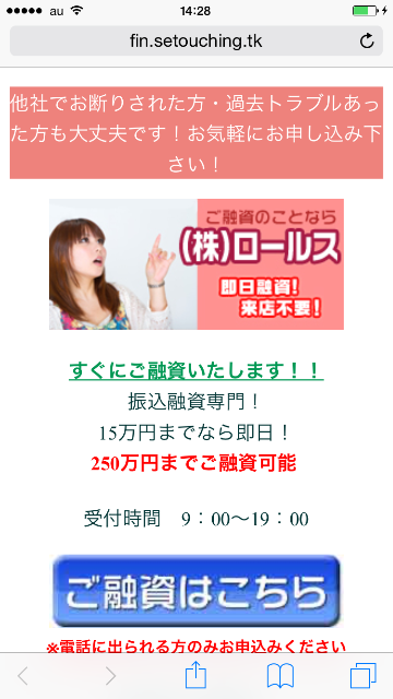 奇麗なスマホサイトを用意していますが、完全な闇金なので騙されないように注意してください。