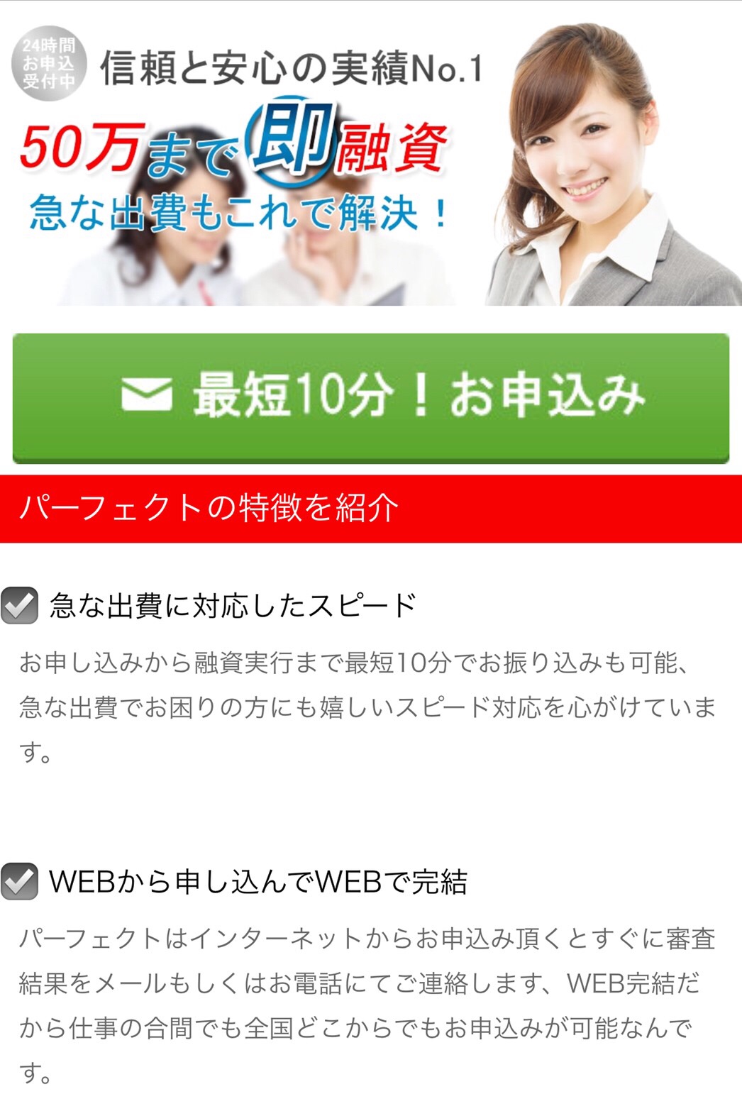 最短5分、独自審査で必ず力になります、秘密厳守、定収入のある方ならどなたでもなど良いことばかり書いていますがここに書いてあることが全てデタラメです。