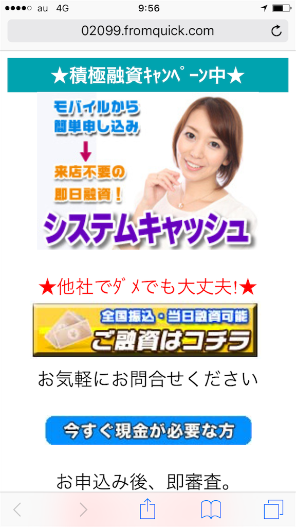 2~3社お断りでもOK、対応実績では他社に負けません、当社に一番におお申込みいただければ必ずお力になります!!主婦・休職者・生活保護の方是非お申込み下さい!24時間申込み受付中、女性向け対応枠強化中!!と書いていますが、全てデタラメです。