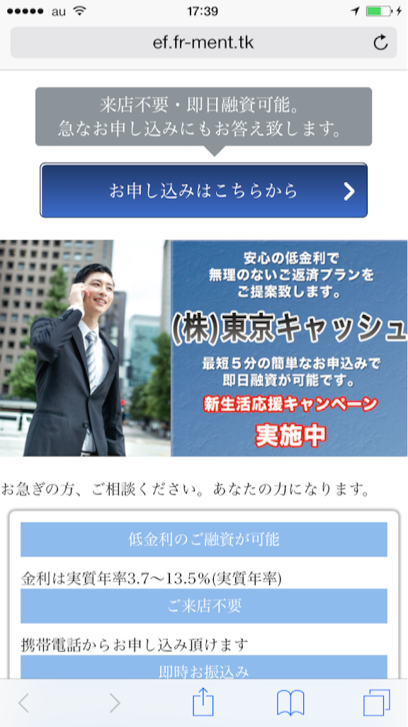 実際に申し込みした人からの情報では、融資実態が無く、実際に融資を受けたという報告が一件もありません。