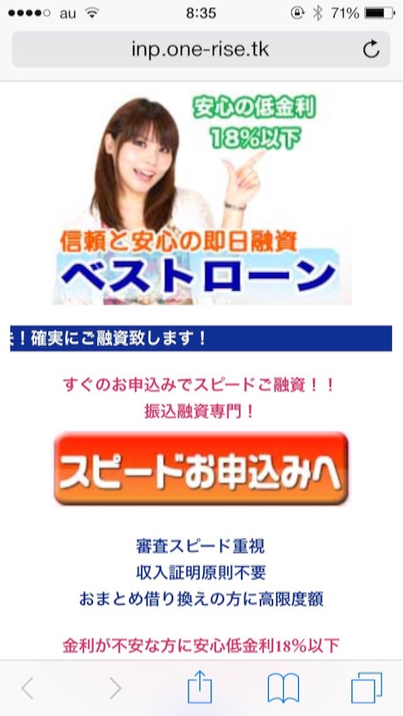 手口としては、申し込みすると、携帯電話を購入して指定場所に送れば融資してやると言われたり、預け入れ融資なので先に銀行口座を送れば融資するなどと提案して来ます。