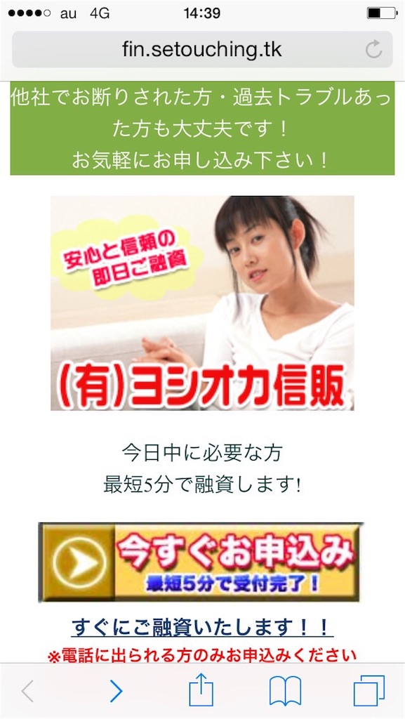 実際に申し込みをすると、個人情報を盗み取られて、その情報を利用されて、押し貸しや、キャンセル詐欺、携帯電話搾取詐欺の被害に巻き込まれてしまいます。