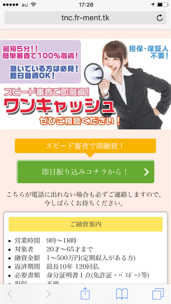 このようなSMSメールで届くのは、ほぼ100%闇金です、騙されないように注意して下さい。